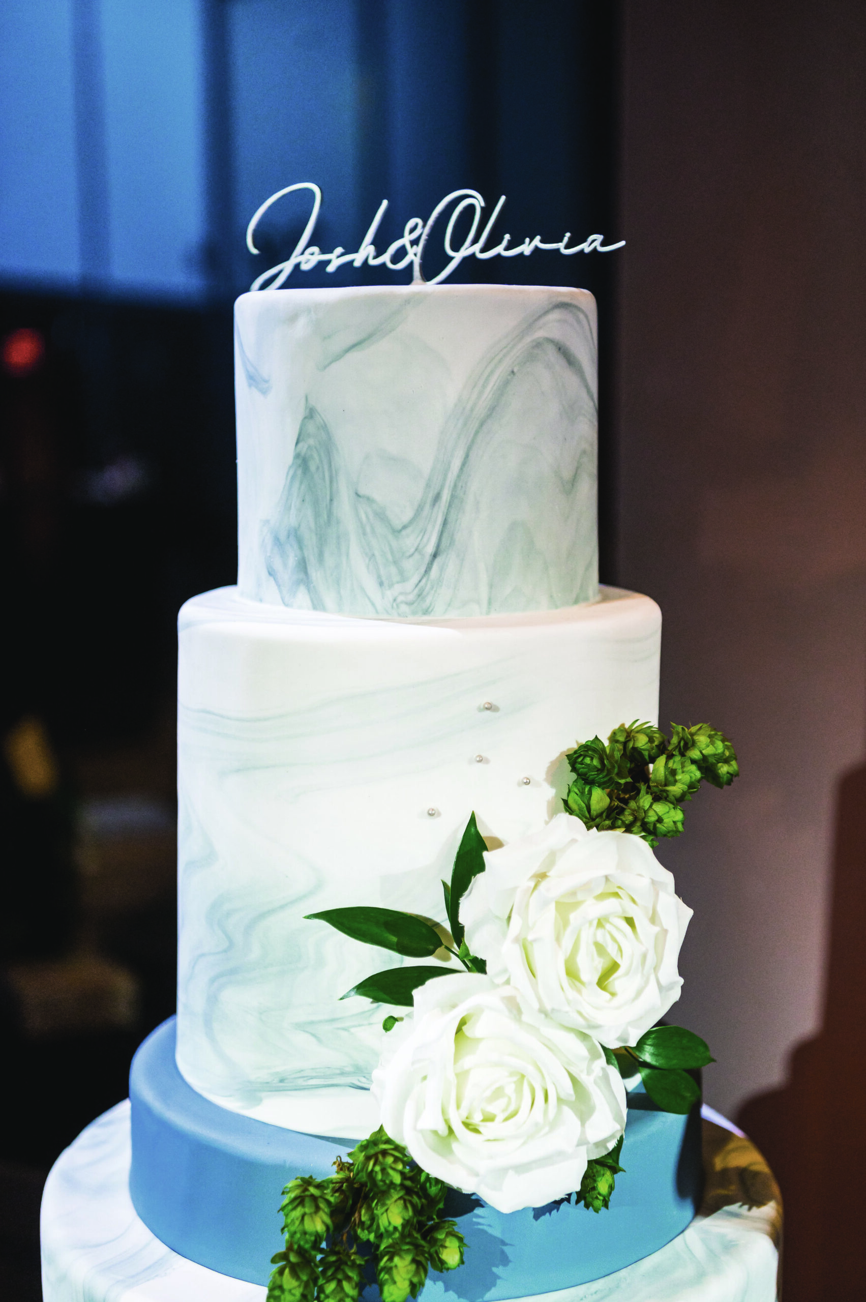 “I knew my Mom is amazing, so that was no surprise. But I was so impressed and grateful for her vision,” says Olivia. “All those cakes, and especially our five-tiered marbled wedding cake, were gorgeous and I made it my mission to try every flavor.”