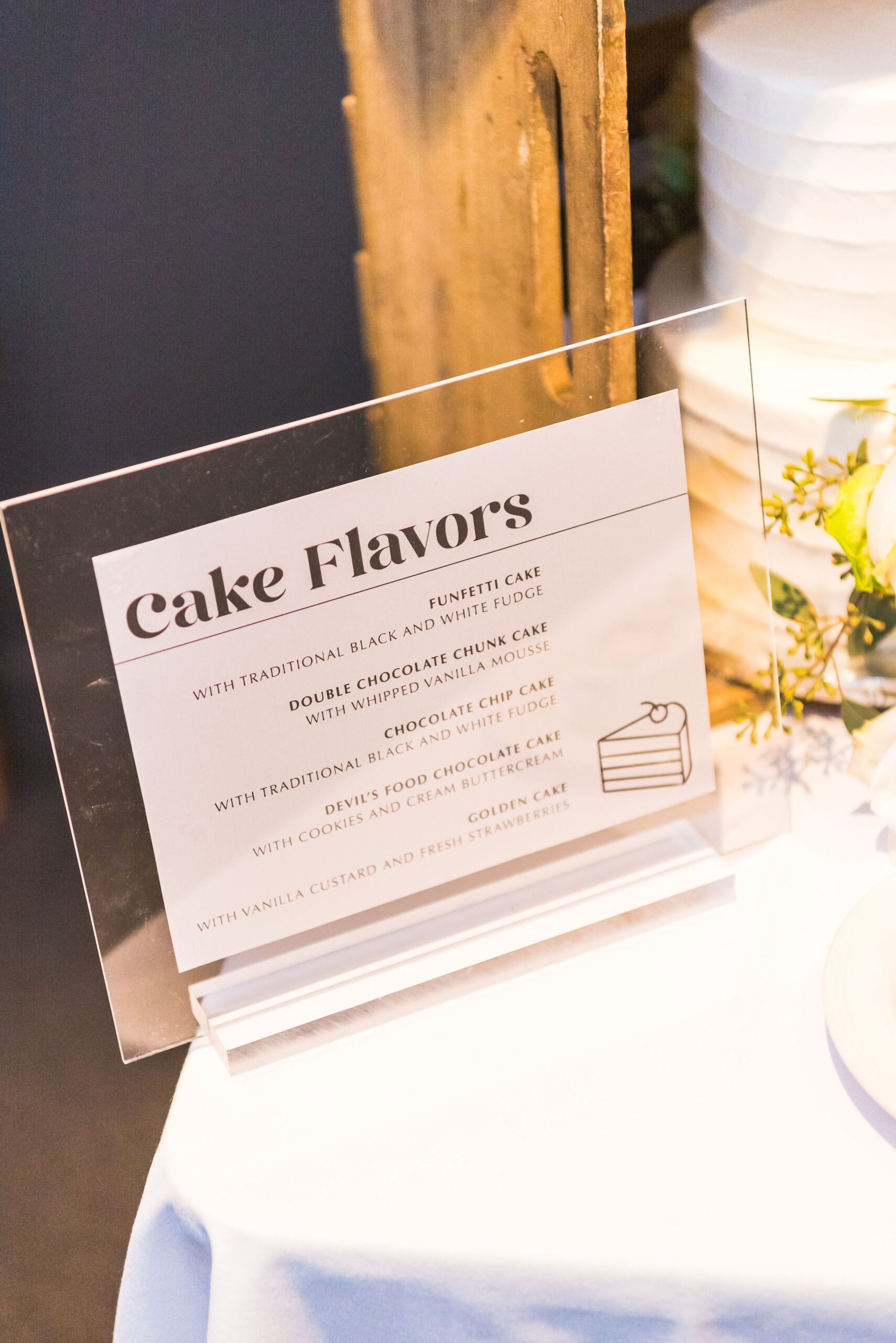 There were five flavors of cake served in all: Funfetti with traditional black-and-white fudge filling; chocolate chip with black-and-white fudge; chocolate chunk with vanilla mousse; devil’s food with cookies and cream; and golden cake with vanilla custard and fresh strawberries.