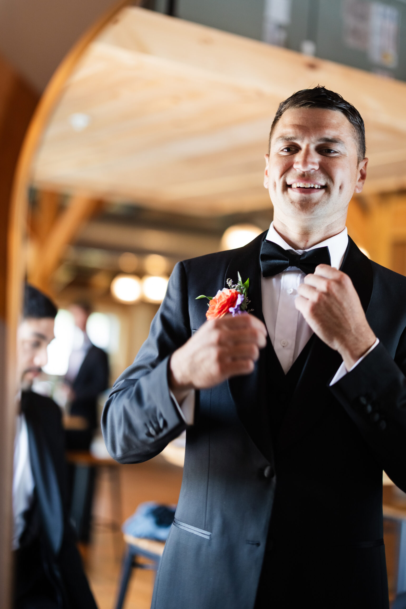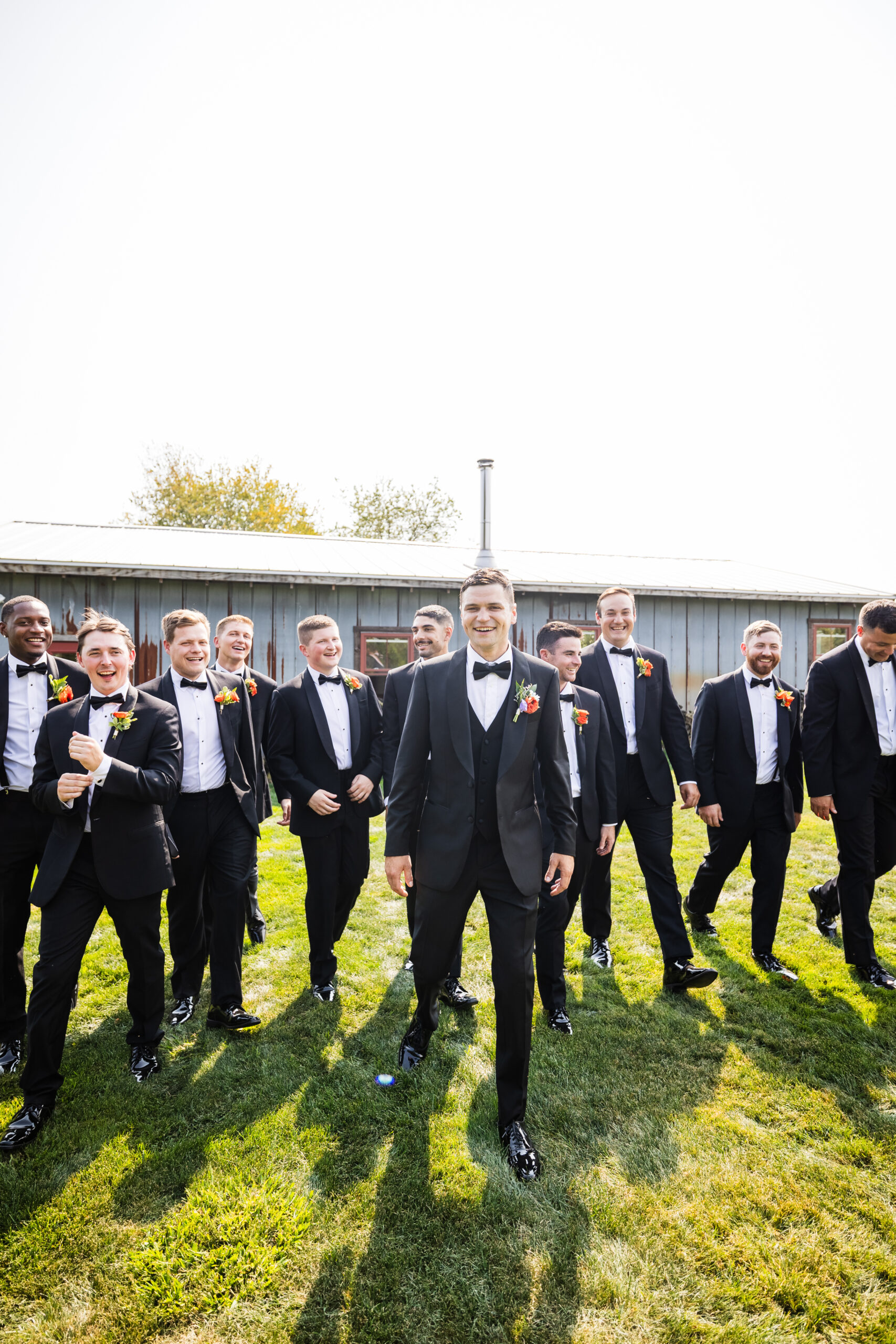 The groomsmen all wore Calvin Klein Tuxedos, and Tarran wore a custom Indochino Tuxedo.