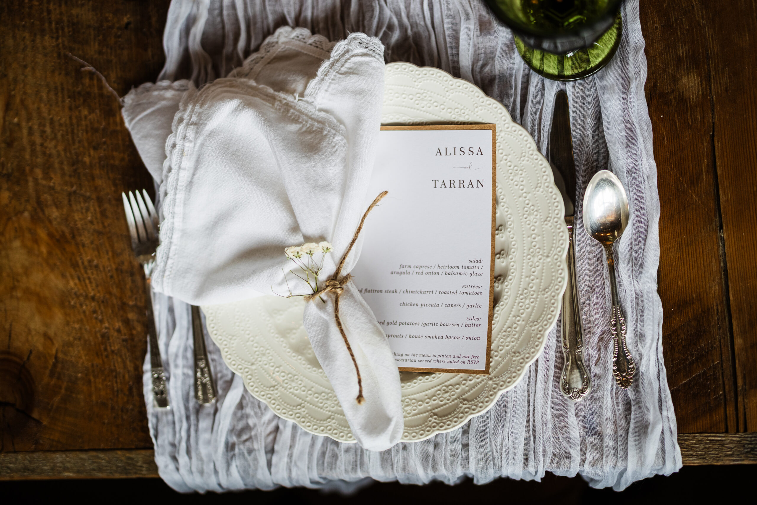 The hand selected mismatched china and colorful goblets added the perfect element of “elevated dinner party” that complemented The Farm’s barn setting beautifully.