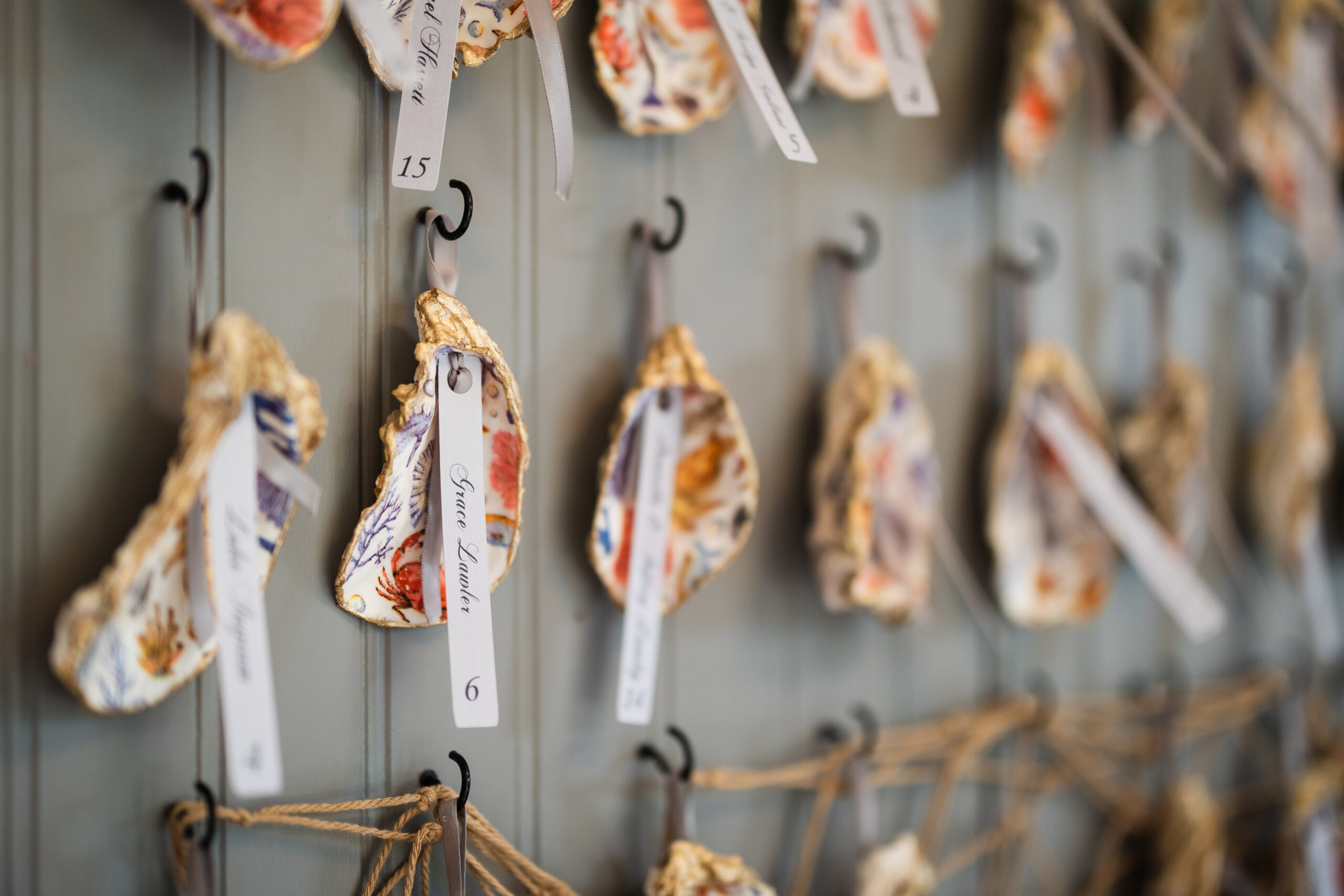 “My mom and I worked with our family friend Tricia, who helped in creating our one of a kind oyster shell seating chart, fishing rod inspired bar signs and fish themed signature drink stirrers.”