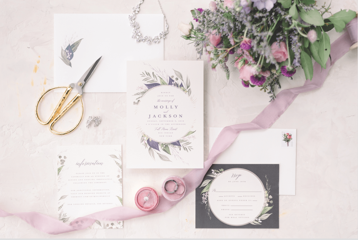 4. Spelling and attention to detail. When ordering through a website, you might have the option to spell-check your wording, but they don’t always catch the little things. You might miss a period after “Mr.” when writing your father’s name or leave “Street” abbreviated instead of written out for your venue’s address. By working directly with a stationer, you can catch these mistakes. Grammar and phrasing are so important on your wedding invitations, so it’s wise to have a professional set of eyes looking at them.—Allison Dupree